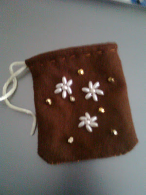 Fiz esta cestinha com pérolas de fantasia rosas e douradas.