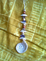 The baubles have feathers inside. So I tied the baubles to the seashell mobile. To finalize I tied bits of jute rope around the baubles and knotted them here and there... The idea was inspired here: